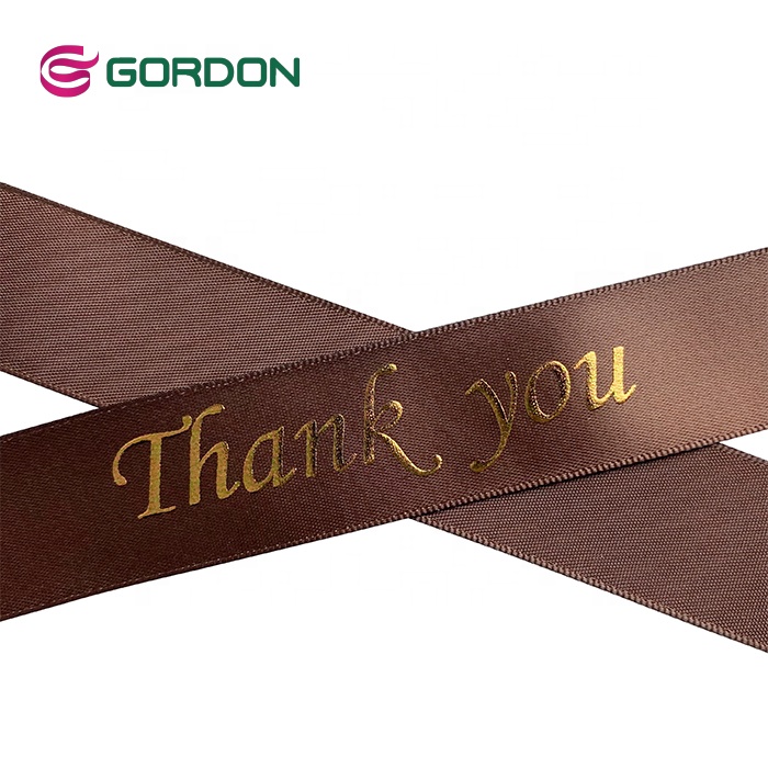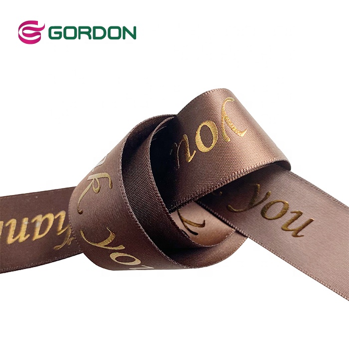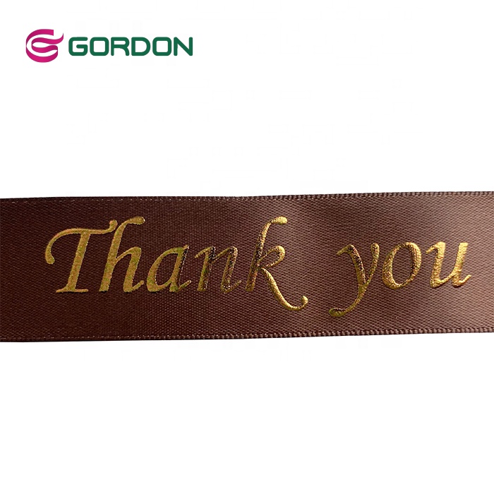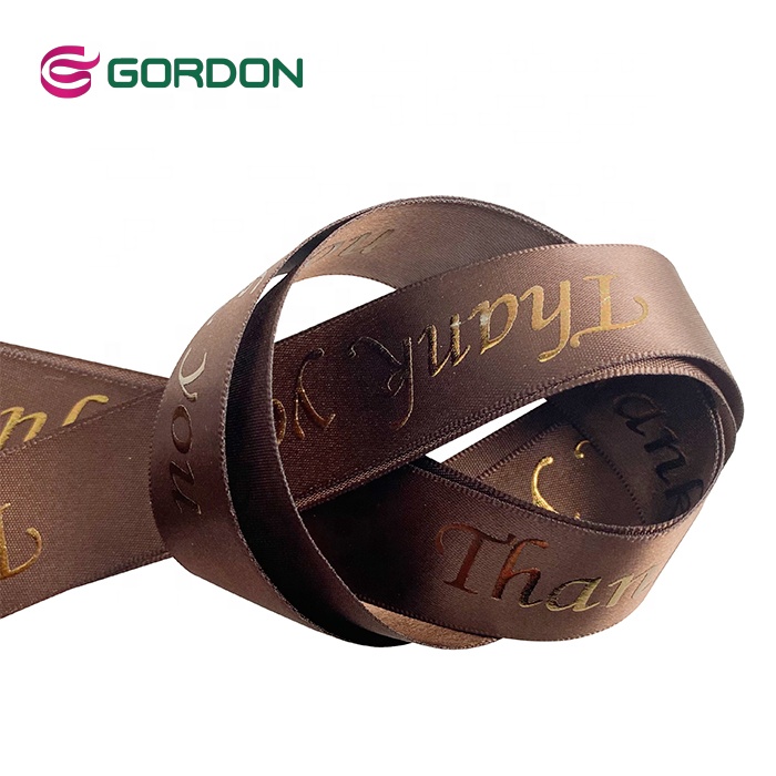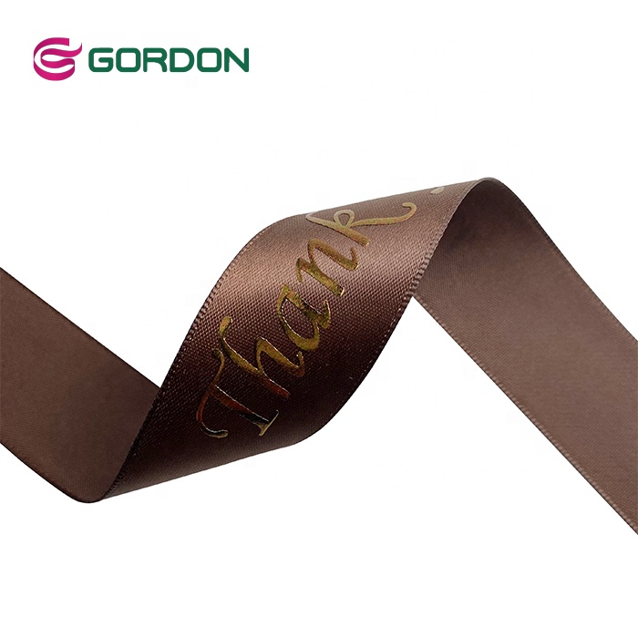 Gordon Ribbons Wholesale 100% Polyester Custom Logo 25mm Single Double Face Satin Ribbon With foil copper print