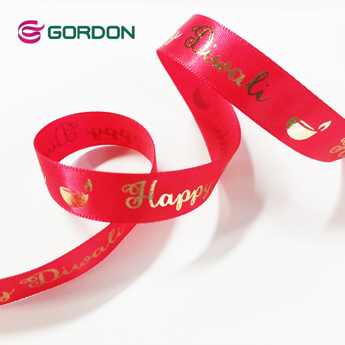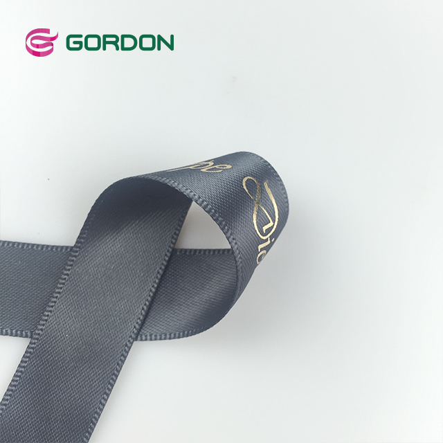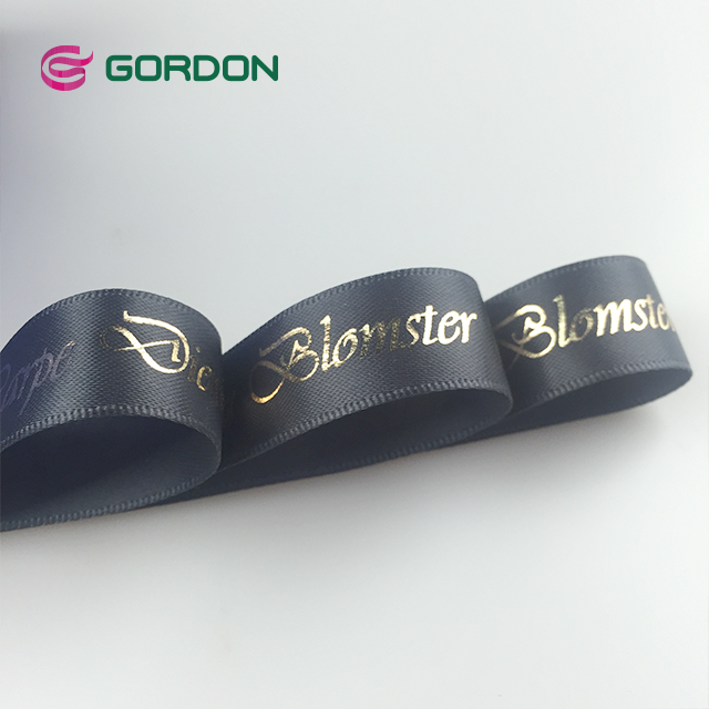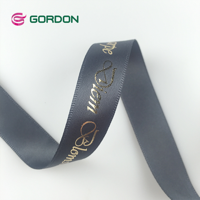 satin ribbon with logo gold hot stamping